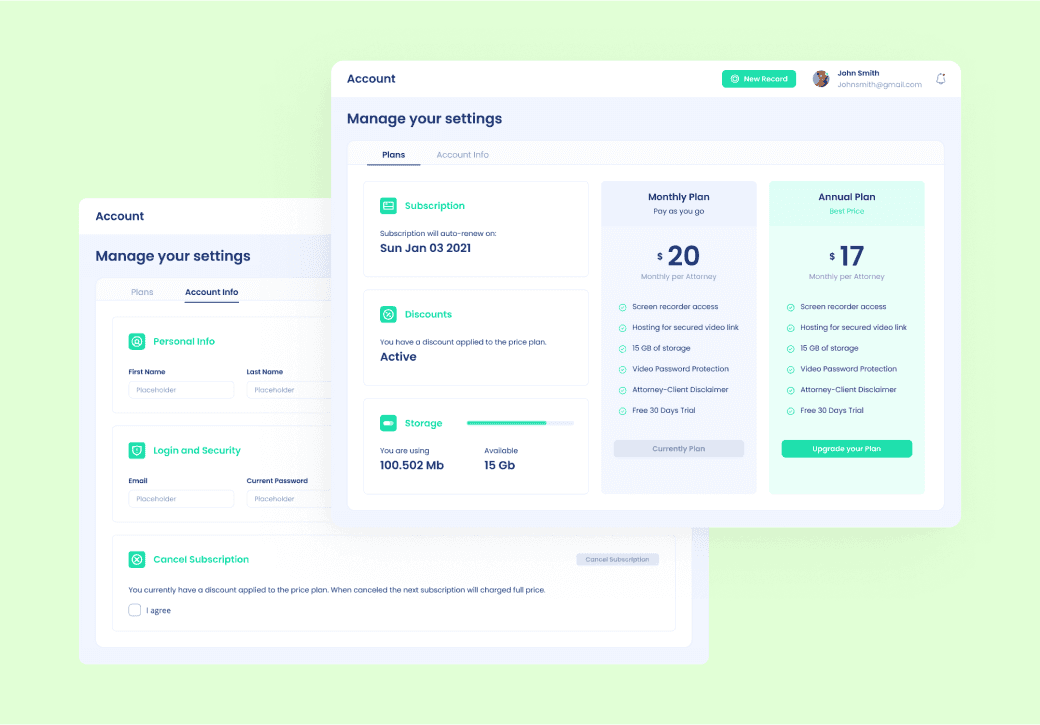 The Account section serves as a centralized hub for all user-related information and settings. Within this section, users can access and manage their account settings, view their current subscription plan, explore upgrade options, monitor their storage usage, and even initiate subscription cancellation if needed.