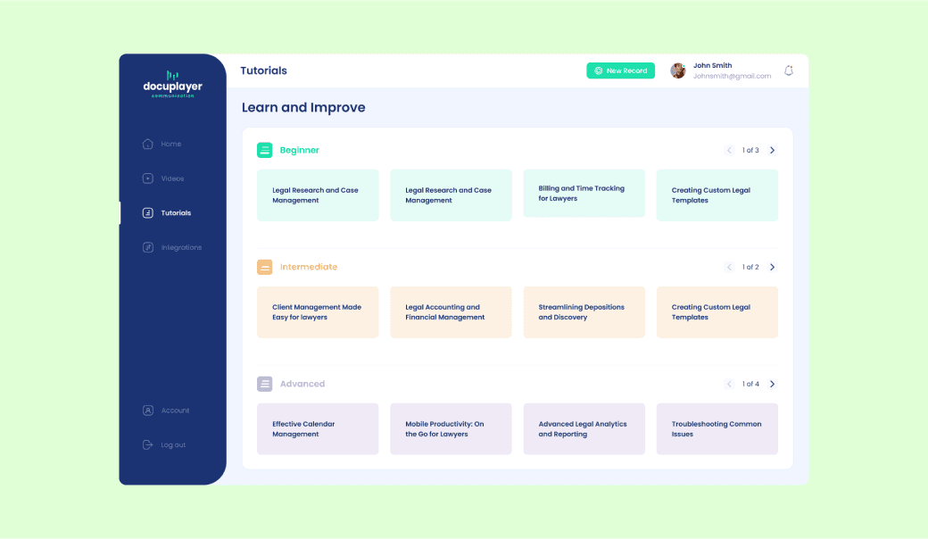 In 3 months, we aimed to drastically enhance the user experience for a non-tech-savvy audience, simplifying complexity and improving usability. We dug deep into user needs, behaviors, and pain points to create an intuitive platform. Through iterative design and feedback, we centralized account management, streamlined video recording, and introduced tiered tutorials, redefining usability and making DocuPlayer engaging and accessible.