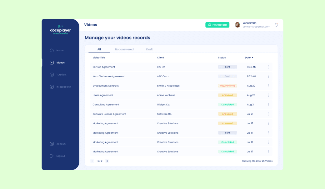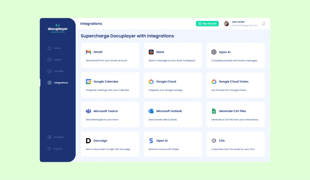 DocuPlayer offers an innovative, user-friendly solution to legal communication challenges. We simplified the process of recording screen with a "click and go" approach, intuitive video storage organization, messages and clear navigation. Our solution enhances client comprehension with descriptive headers and an attractive, friendly design. We also prioritize security through confidentiality measures and password protection for shared documents, ensuring a seamless and secure experience.