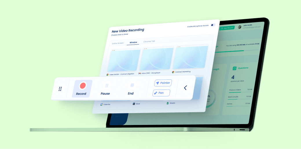 As a Lawyer, I want to record a video sharing my screen and explaining a contract to a client so that I can reduce the back and forth with them and optimize my time.