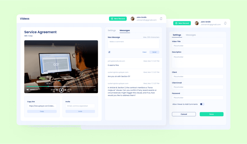 DocuPlayer addresses the longstanding challenge lawyers encounter when trying to convey legal information to their clients in an understandable manner. By allowing lawyers to add screen share recording, audio explanations to documents and messages exchange, this platform transforms complex legal documents into easily comprehensible resources.