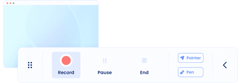 Once the screen is selected, it opens with a floating menu that offers recording, pause, and end options. For added versatility, users can opt to make their mouse pointer visible and utilize a pen tool for drawing during the recording. To keep the interface clean, the floating record menu can be collapsed.