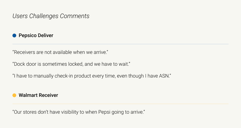 The problems include delays when Walmart is not prepared to receive shipments, locked doors causing wait times, manual checks despite having tracking information, and uncertainty about when PepsiCo's products will arrive.