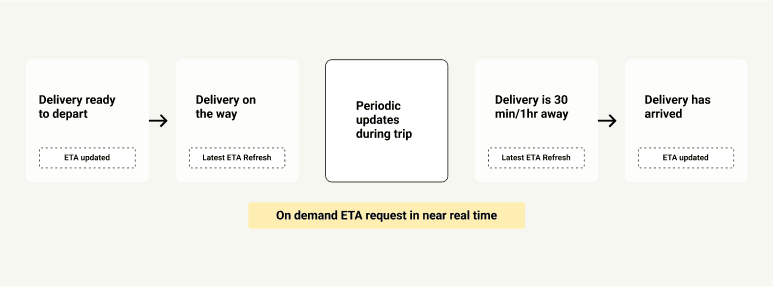 We designed a four-stage notification system: "Ready to Depart," "In Transit," "30 Minutes to 1 Hour Away," and "Changed ETA." This keeps our staff well-informed about their delivery status, enabling proactive management.